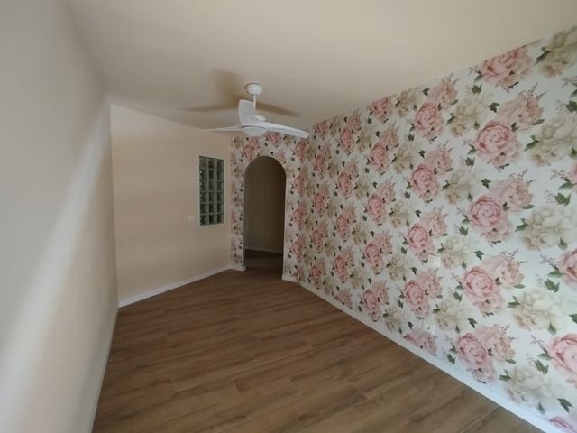 - Habitación 1: con papel pintado floral y un arco que da paso a otra estancia.