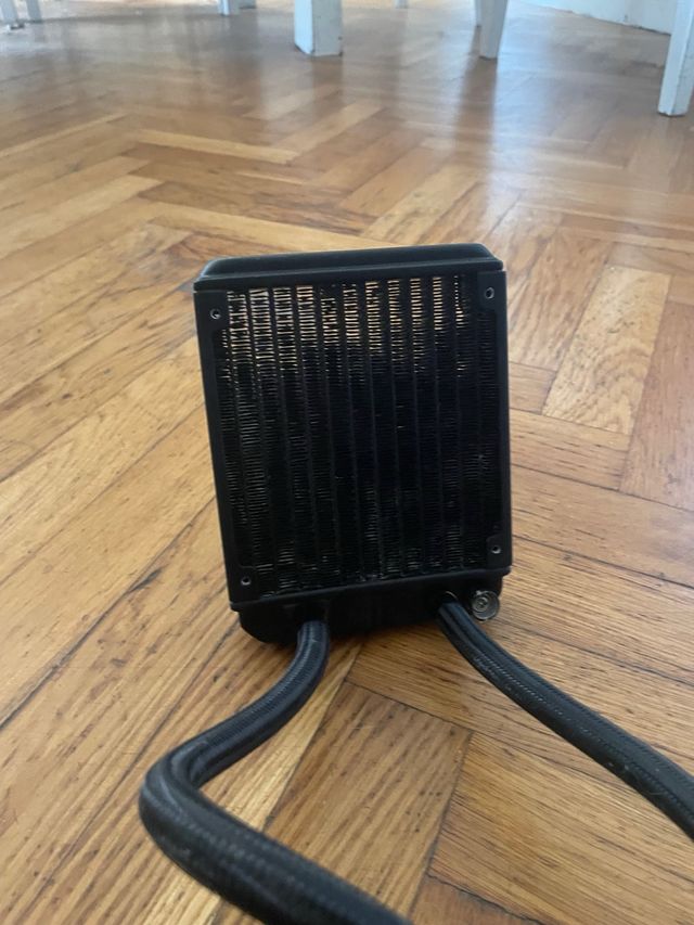 Sistema de refrigeración líquida en color negro. - Radiador de metal. - Tubos flexibles trenzados.