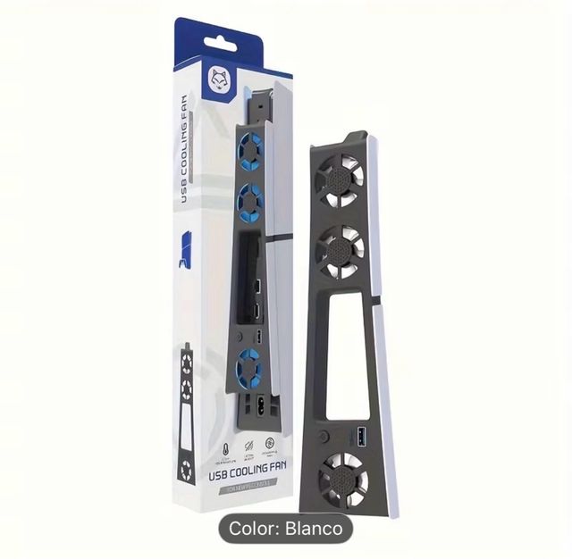 Detalles del productoRefrigerador USB para consola PS5 en color blanco. Diseñado para mejorar la ventilación.