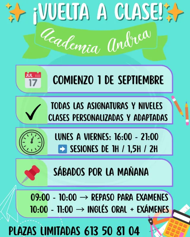 Detalles del producto🌟 ¡Refuerzo educativo para todos los niveles en Academia Andrea! 🌟