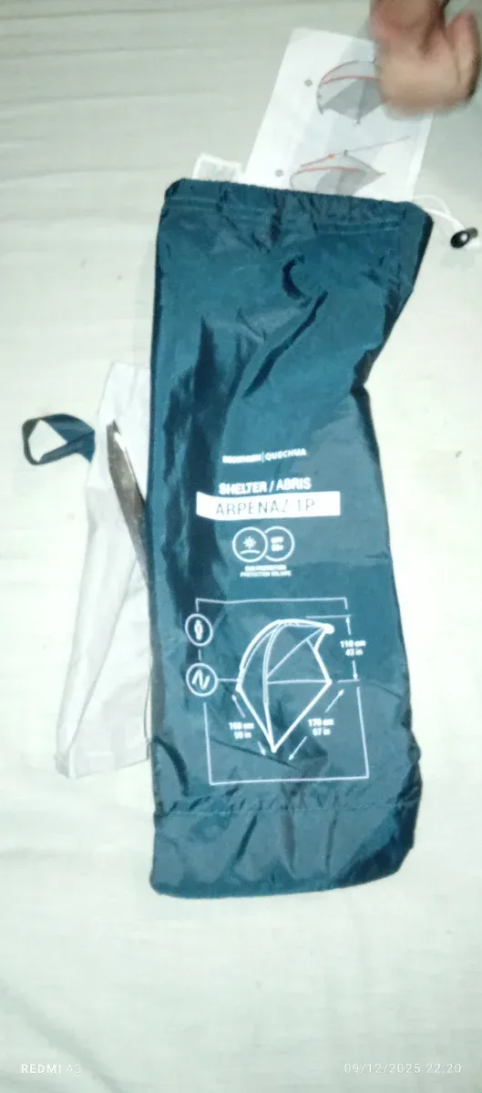 Tienda de campaña compacta y ligera, modelo Arpenaz 1P. - Color azul marino. - Incluye bolsa de transporte. - Diseño para 1 persona.