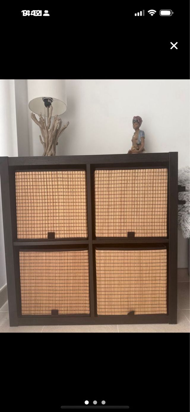 vendo la estanteria kallax nueva de hace 3 meses , y los cestos que me costaron 40 los 4 , los regalo con la estanteria. precio no negociable.