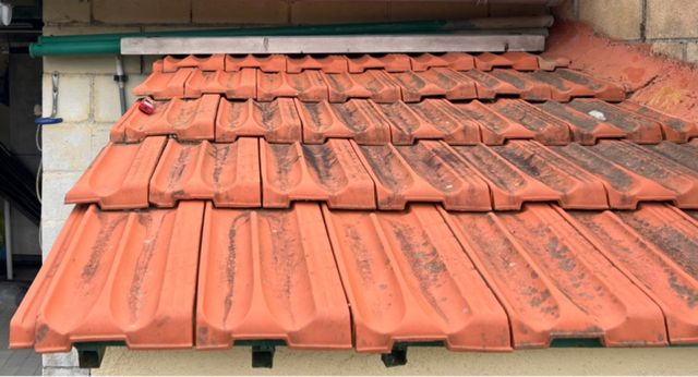 Detalles del productoConjunto de tejas de terracota, ideales para tejados. Su color naranja aporta un toque rústico.