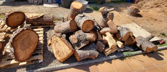 Se regalan varios troncos de pino. Recién cortados. Algunos pesan bastante, ayudo a cargarlos