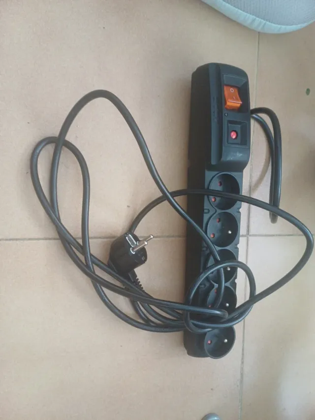 Regleta de alimentación con cinco enchufes y un interruptor general. - Color negro. - Interruptor de encendido/apagado. - Enchufe europeo.