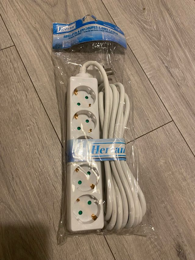 Detalles del productoRegleta de 5 enchufes de la marca Herran con cable de 5 metros.