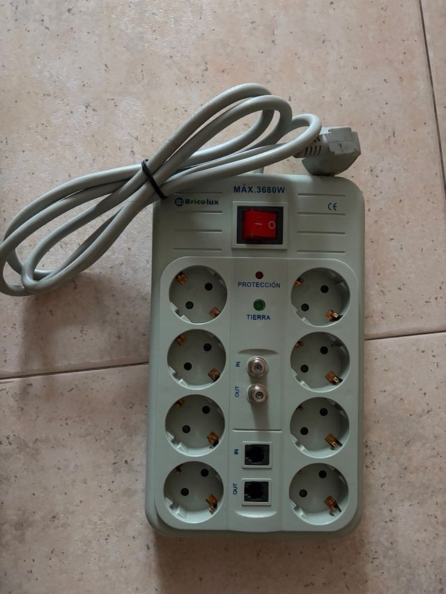Detalles del productoRegleta de la marca Bricolux con protección contra sobretensiones. Cuenta con 8 enchufes y un interruptor general.