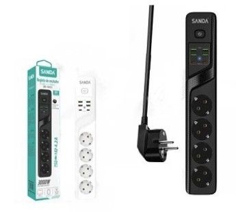 Regleta de enchufes. Potencia: 3000W. Incluye 4 USB + 2 Tipo C + 4 enchufes de corriente. , Modelo: SD-4451.