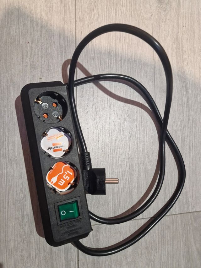 Regleta enchufes en buen estado. - 3 tomas de corriente. - Interruptor de encendido/apagado. - Cable de alimentación de longitud considerable.