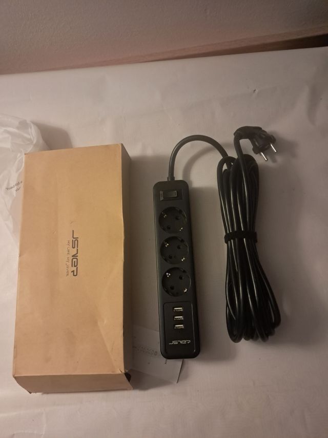 Regleta JSVER 3 enchufes + 3 USB