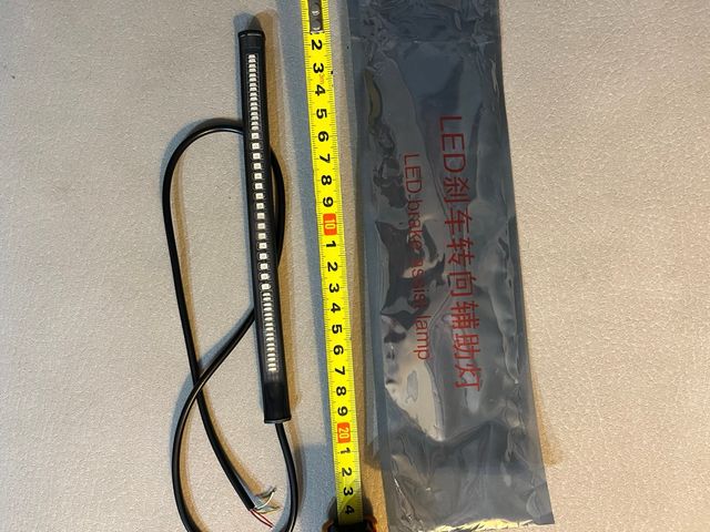 Regleta LED multifunción para moto, sirve como luz de freno y de intermitente. - Diseño flexible y alargado. - Luces LED de alta visibilidad. - Cableado para conexión.