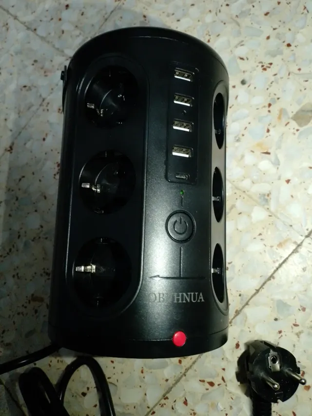 Detalles del productoRegleta vertical con múltiples tomas de corriente, base para carga inalámbrica y puertos USB para cargar tus dispositivos. Diseño moderno y compacto.