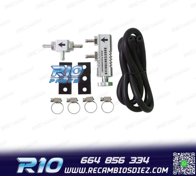 Detalles del productoMóvil: 664 856 334 - Referencia: RLC148939. REGULADOR DE PRESIÓN DEL TURBO Permite modificar manualmente la presión aplicada a la Wastegate (válvula encargada de regular la presión que genera la turbina) para regular la presión del turbo. Unidades por blíster: 1 juego Regulador manual de la presión del turbo (Boost Valve) con todos los accesorios para el montaje. Es de aluminio anodizado y lleva rueda de regulación.