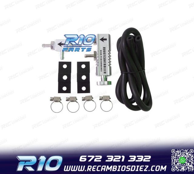Detalles del productoMóvel: 672 321 332 - Referencia: RLC148939. REGULADOR DE PRESIÓN DEL TURBO Permite modificar manualmente la presión aplicada a la Wastegate (válvula encargada de regular la presión que genera la turbina) para regular la presión del turbo. Unidades por blíster: 1 juego Regulador manual de la presión del turbo (Boost Valve) con todos los accesorios para el montaje. Es de aluminio anodizado y lleva rueda de regulación.