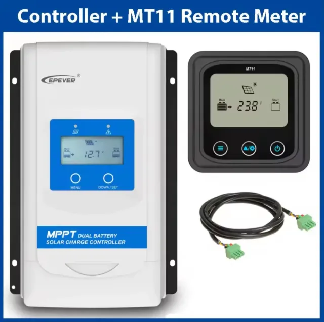 Detalles del productoSe vende regulador solar EPEVER MPPT de 30A para doble batería. Incluye el controlador principal y el medidor remoto MT11.
