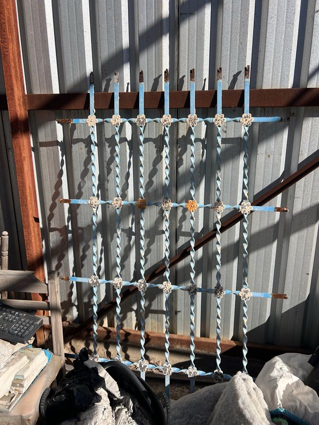 Detalles del productoPreciosa reja antigua de hierro forjado, con más de 80 años de historia. Su diseño presenta detalles florales y un acabado en color azul claro.