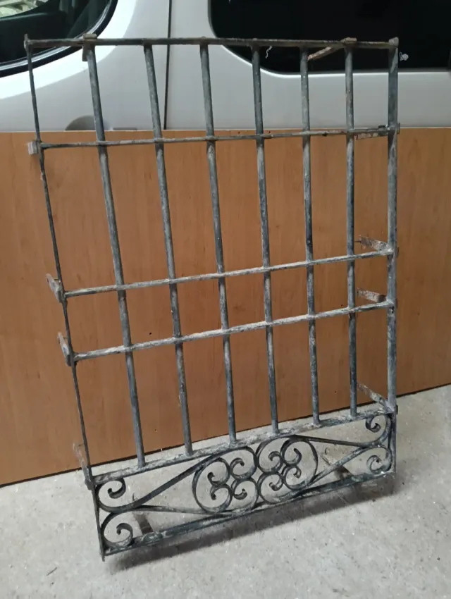 Detalles del productoReja antigua para ventana, con un diseño de forja decorativo en la parte inferior. Ideal para dar un toque clásico a tu hogar.