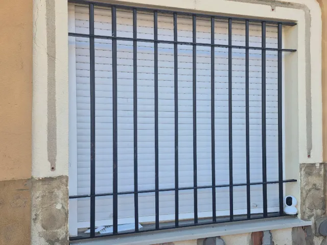 Reja de seguridad de forja para ventana. Diseñada para ofrecer protección y disuasión. - Barras de metal resistentes. - Acabado en color negro.