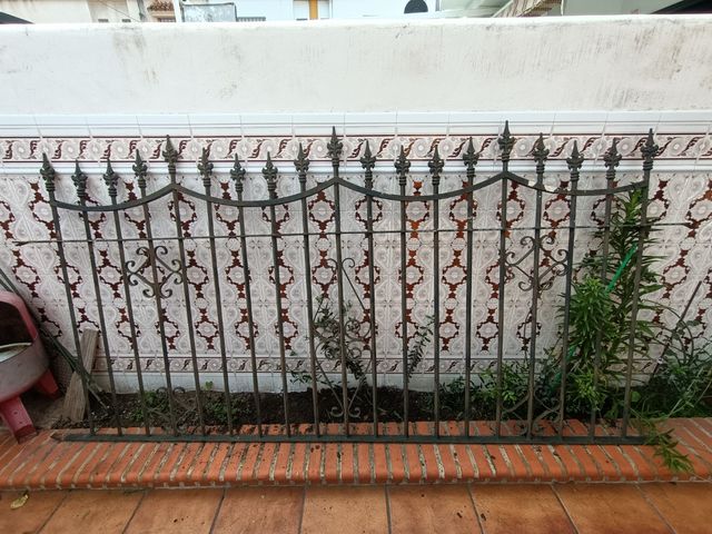 Detalles del productoPreciosa reja de forja para jardín o patio. Es de color oscuro, con detalles ornamentales. Ideales para delimitar espacios. Reja para patio en buenas condiciones.