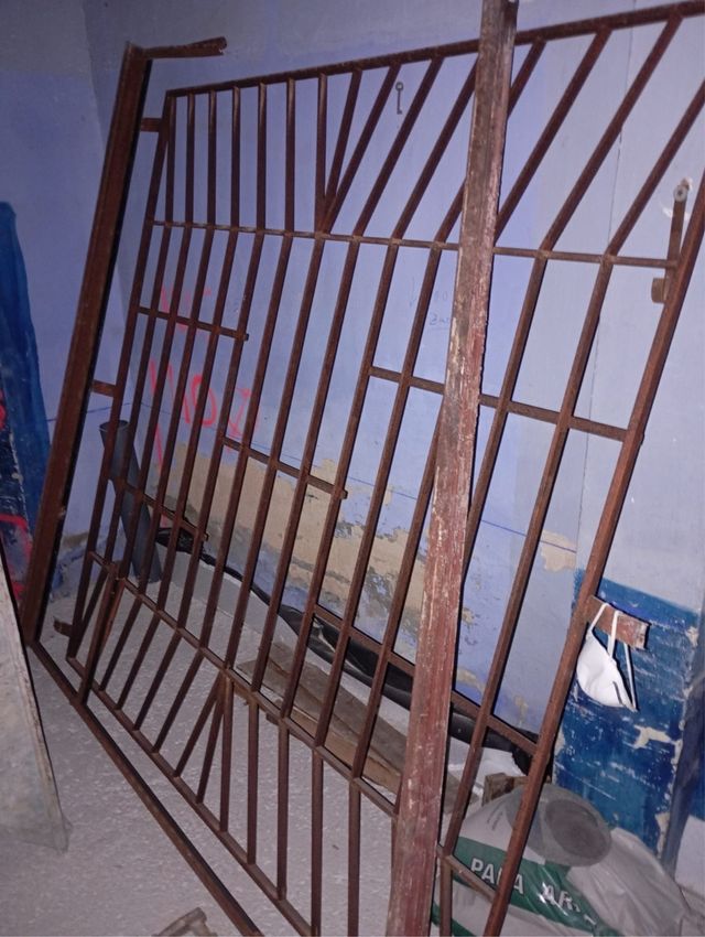 Reja de hierro con medidas de 180 cm de alto por 190 cm de ancho. - Estructura de barras metálicas. - Diseño con barrotes verticales y diagonales.