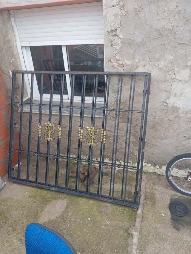 Detalles del productoConjunto de rejas de metal para ventana, con un diseño ornamental.