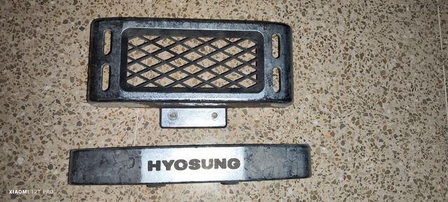 Detalles del productoSe venden dos piezas para moto Hyosung: una rejilla para el radiador y un logo. Ambas piezas presentan un aspecto usado.