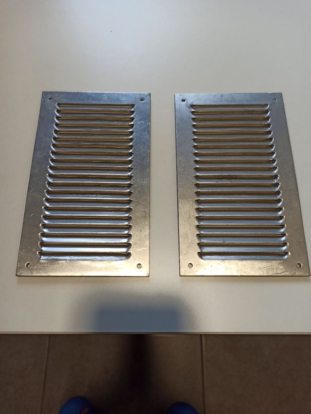 Detalles del producto2 rejillas de ventilación de aluminio de 19cm x 11 cm. Han estado guardadas en el altillo y por eso han cogido polvo pero no se han usado. Las vendo baratas. A 1€ la unidad