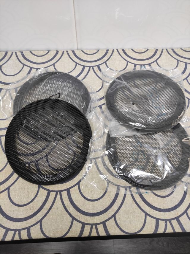 Detalles del productoSe venden 4 rejillas Originales para medios o woofers de 16,5 cm. Están sin usar porque los altavoces van en los huecos originales del coche y no son necesarias. Medidas del producto