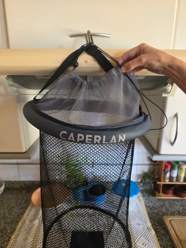 Rejoncillo de pesca de la marca CAPERLAN. Es un accesorio práctico para la pesca. - Malla de red. - Cierre con cordón. - Asa para colgar.