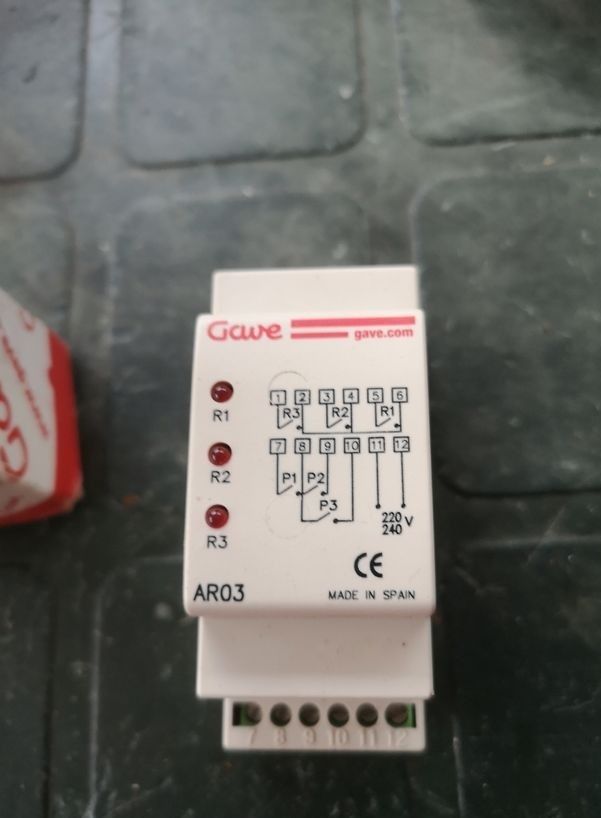 Detalles del productoRelé de alternancia simultánea de la marca Gave, modelo AR03.