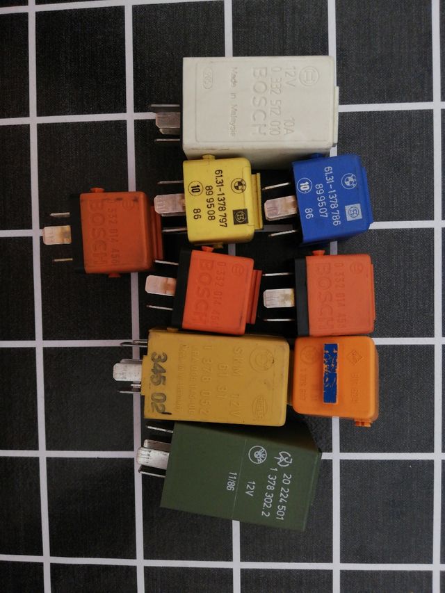 Detalles del productoSe venden 9 relés para BMW E32, marca Bosch. Están en buen estado, no fallaban cuando quedo el coche parado, comprobados con multimetro y corriente