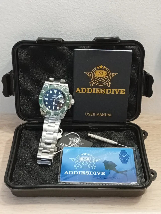 Artículo: Impresionante reloj de buceo (Diver Watch) de la marca ADDIESDIVE, modelo con bisel verde. Un tool watch robusto y fiable con la estética de los grandes clásicos.