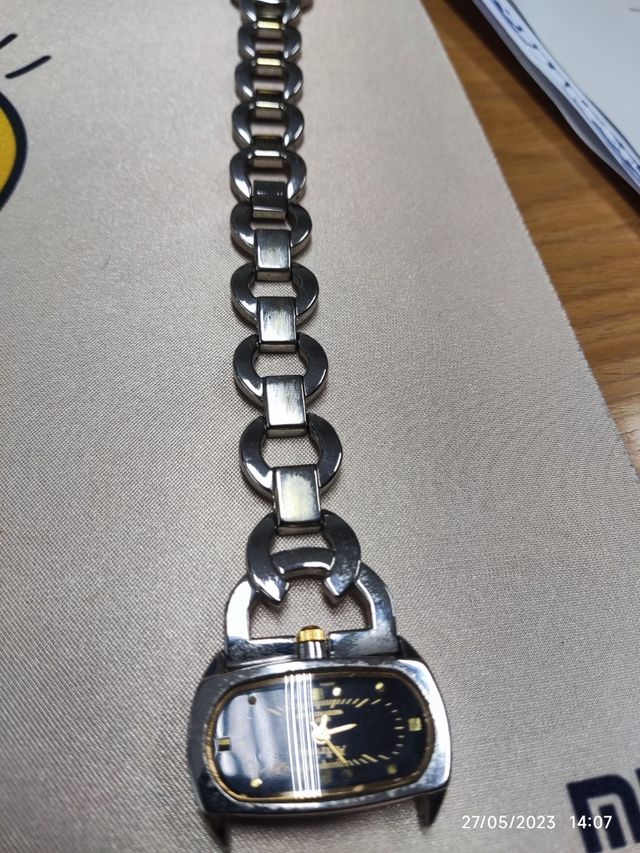 Reloj de señora marca Adrina con pulsera de acero inoxidable. Antiguo. Sin pila. Sin un enganche.