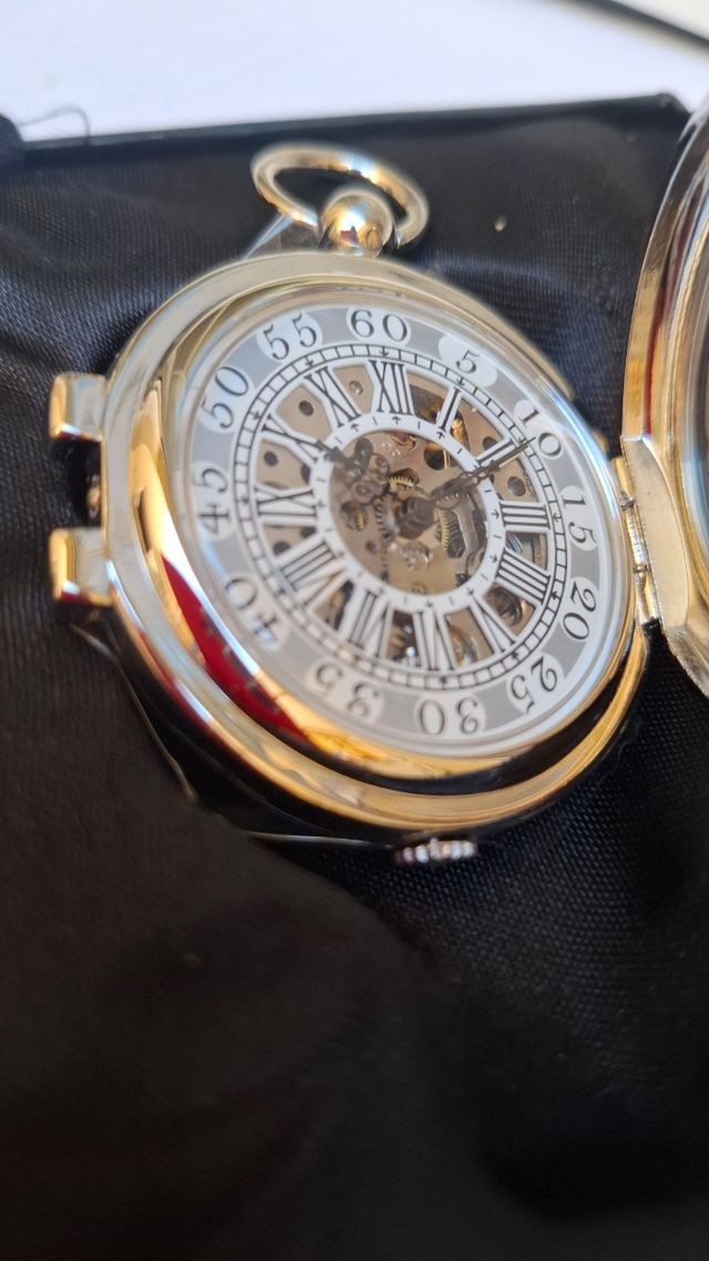 Detalles del productoPrecioso reloj de bolsillo mecánico con baño de plata. Se encuentra en perfecto estado.