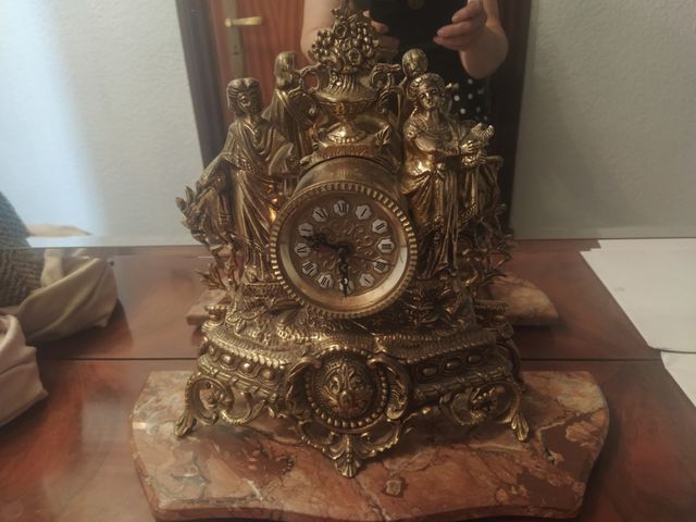 Detalles del productoElegante reloj de bronce con figuras. Ideal para decoración.