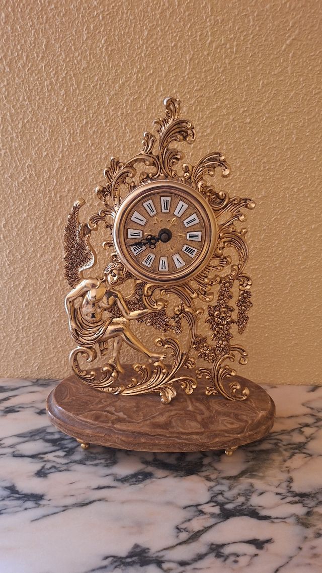 Detalles del productoPrecioso reloj de sobremesa de bronce antiguo. Se encuentra en muy buen estado de conservación.