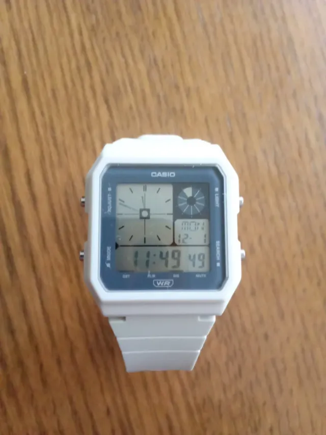 Reloj Casio modelo LF-20W en color blanco. Un diseño clásico y funcional. - Correa de resina. - Pantalla digital. - Resistente al agua (WR).