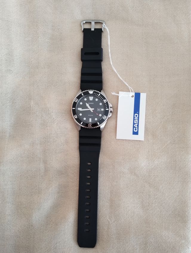 Detalles del productoReloj Casio MDV-107-1A1V nuevo para estrenar . Medidas 49,5 x 44,2 x 12,1 peso 92gr. Carcasa de acero y bisel inverso. Correa de resina. Corona y tapa trasera a rosca. Resistente al agua 20 bares. Regalo 2 protectores de cristal del relo. Comprado adquirido en julo de 2025.