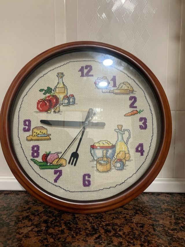 Reloj Cocina Punto de Cruz Hecho a Mano