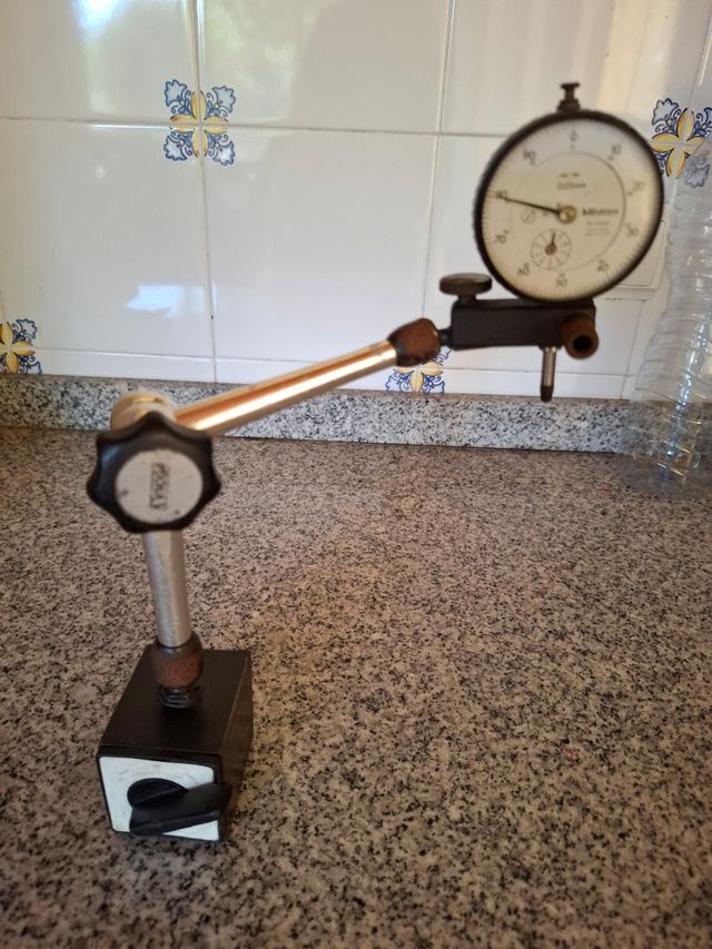 Detalles del productoHerramienta de medición con base magnética. Tiene una pequeña grieta en el botón on/off y típicos desgastes de uso .