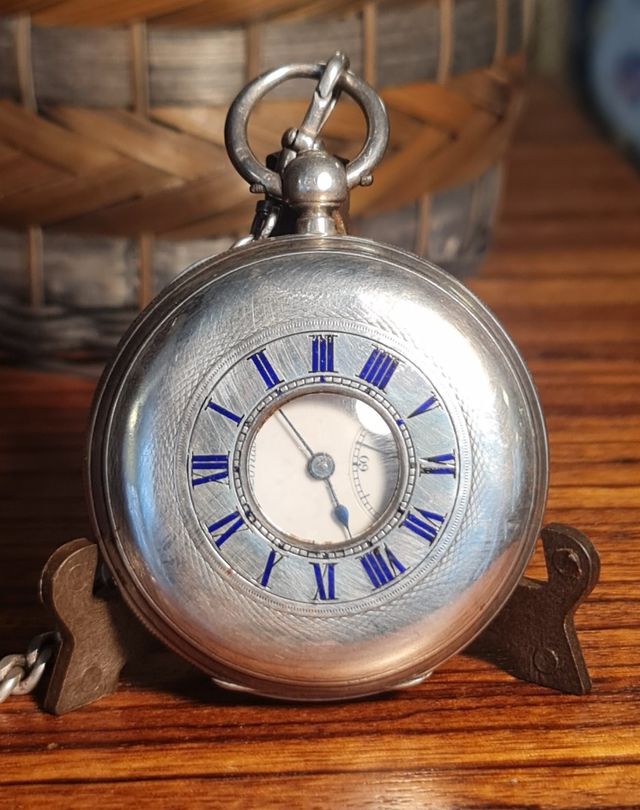 Reloj de Caballero en plata. Cuerda y puesta en hora con llave (incluída). Reloj tipo Semi Cazador. Con la inscripción: "Por Orden de su majestad la Reina Victoria". Maquinaria con patente 4658 (ver descripción), número de serie 91185, fabricado y distribuido por William Benson, 62-64 Ludgate Hill, Londres.