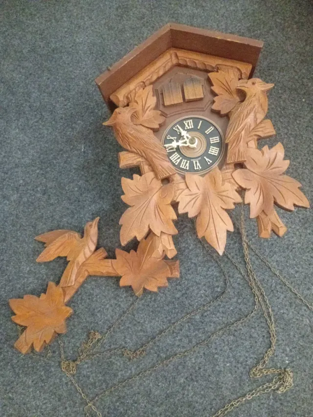 Detalles del productoEste reloj de cuco está hecho de madera tallada con un diseño tradicional.