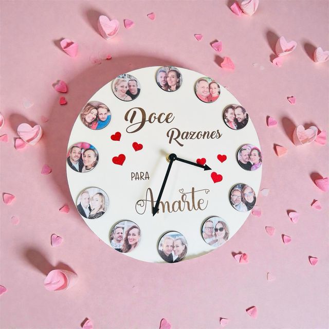 Reloj de madera personalizado con 12 fotos