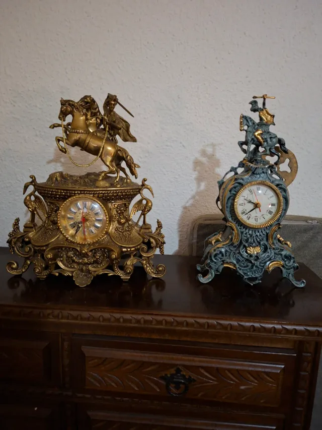 Reloj de metal con figura de caballero