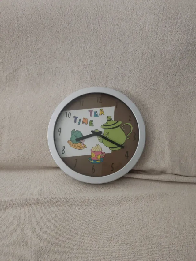 Detalles del productoReloj de pared con un divertido diseño de Tea Time, perfecto para habitaciones infantiles o para añadir un toque de color.