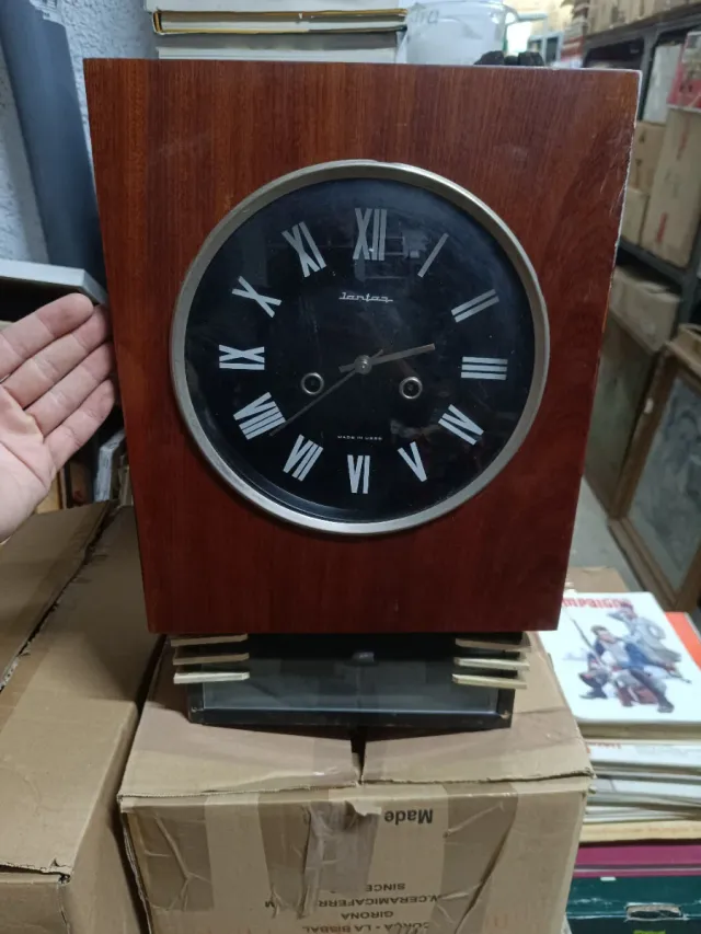 Detalles del productoReloj de pared antiguo de origen ruso, con una esfera de números romanos y diseño clásico, original de la URSS comunista.