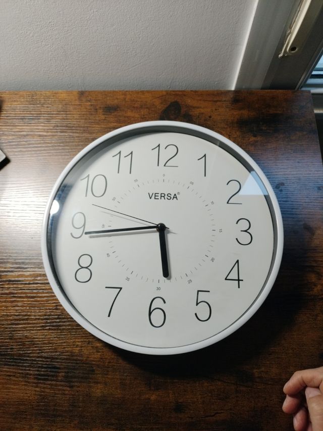 Detalles del productoReloj de pared de la marca Versa, con un diseño moderno y limpio en color blanco.