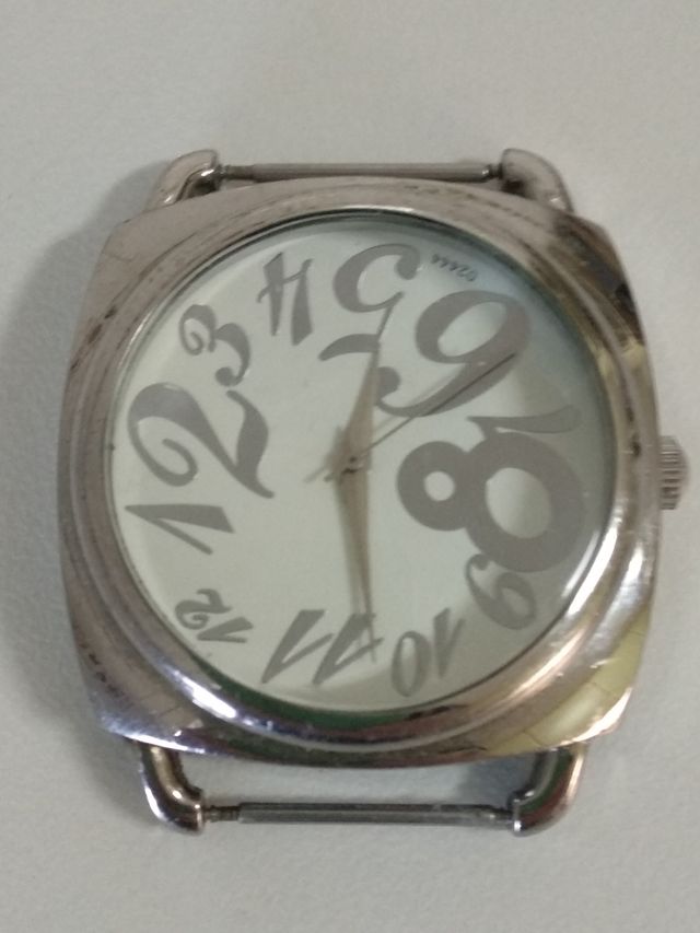 Vendo este curioso reloj de pulsera con la esfera descolocada. Está funcionando pero sin correa. Se entrega con pila nueva. 5€.