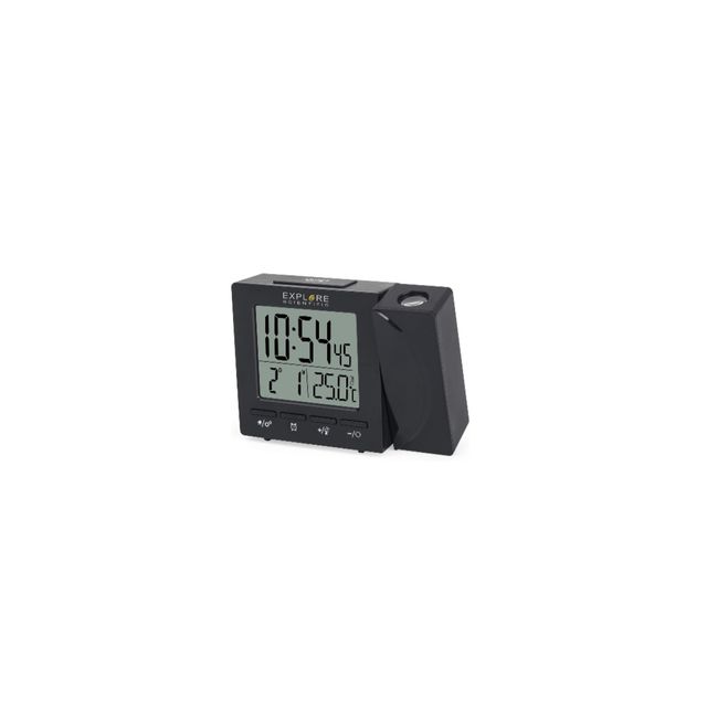 Detalles del productoEXPLORE SCIENTIFIC RDP-1001 - Reloj despertador proyector, temperatura interior, radio controlado, cabezal giratorio, pantalla retroiluminada, alarma, color negro