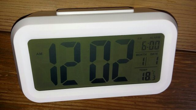 Reloj digital con alarma y temperatura color blanco, funciona con 3 pilas AAA no incluidas